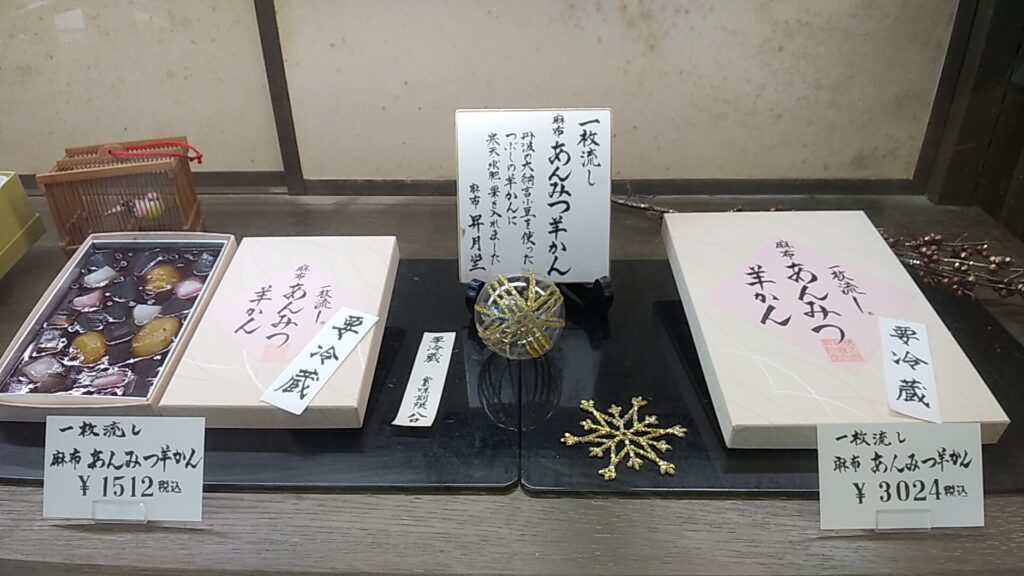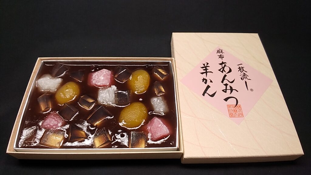 こちらのお店の一押しは、何と言っても「一枚流し麻布あんみつ羊かん」です。