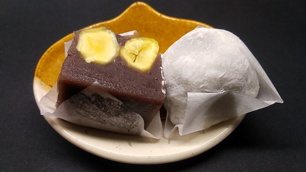 滑らかな羊かんの甘さと、もちもちとした紅白の求肥、ホクッとした栗、そしてプリッとした寒天。